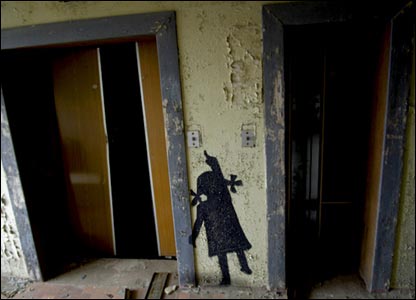 Эти силуэты - символы исчезнувшего населения - нарисованы неформальными художниками из Белоруссии и, говорят, из Герм...